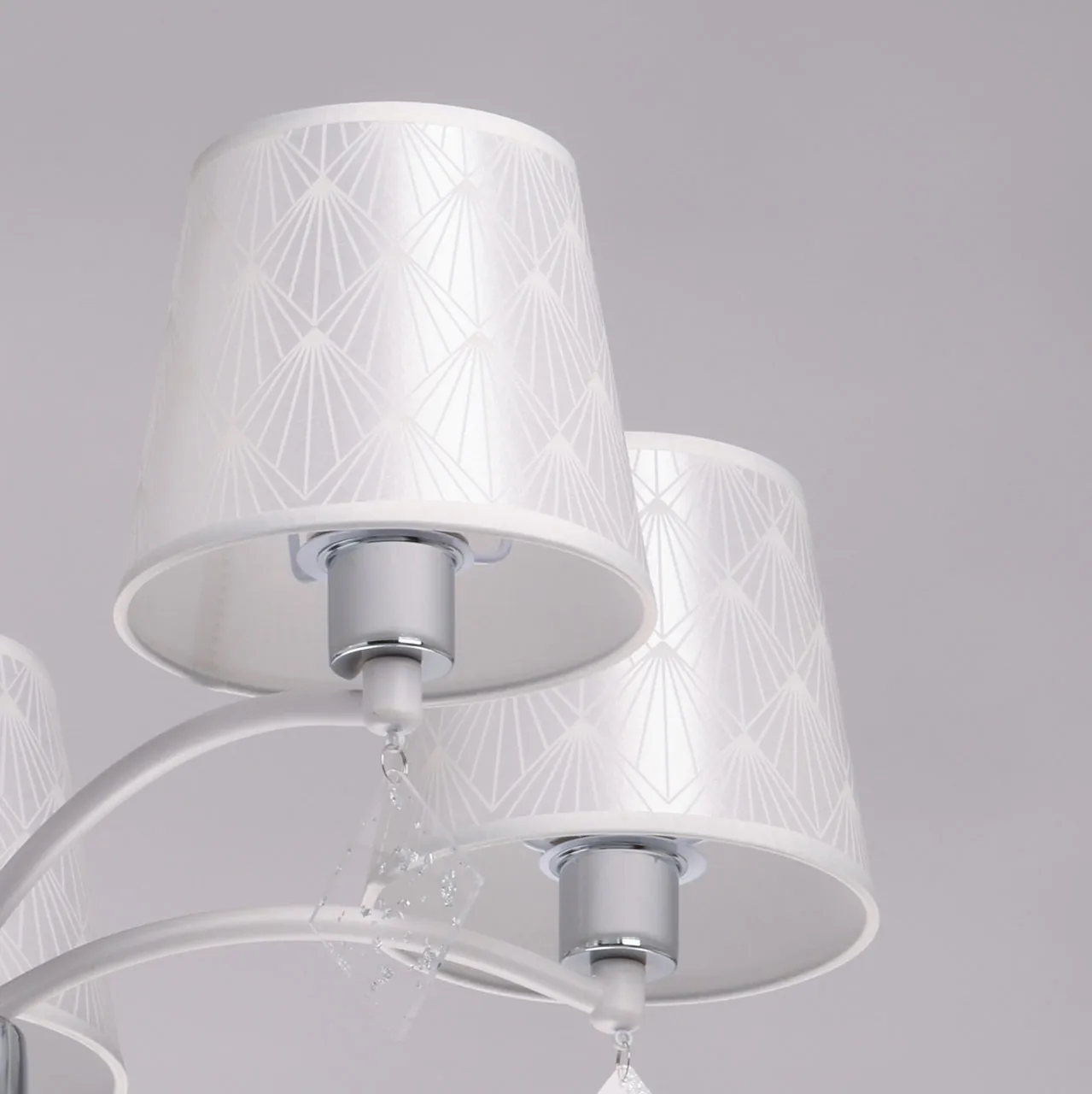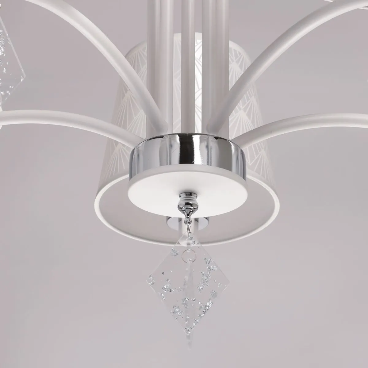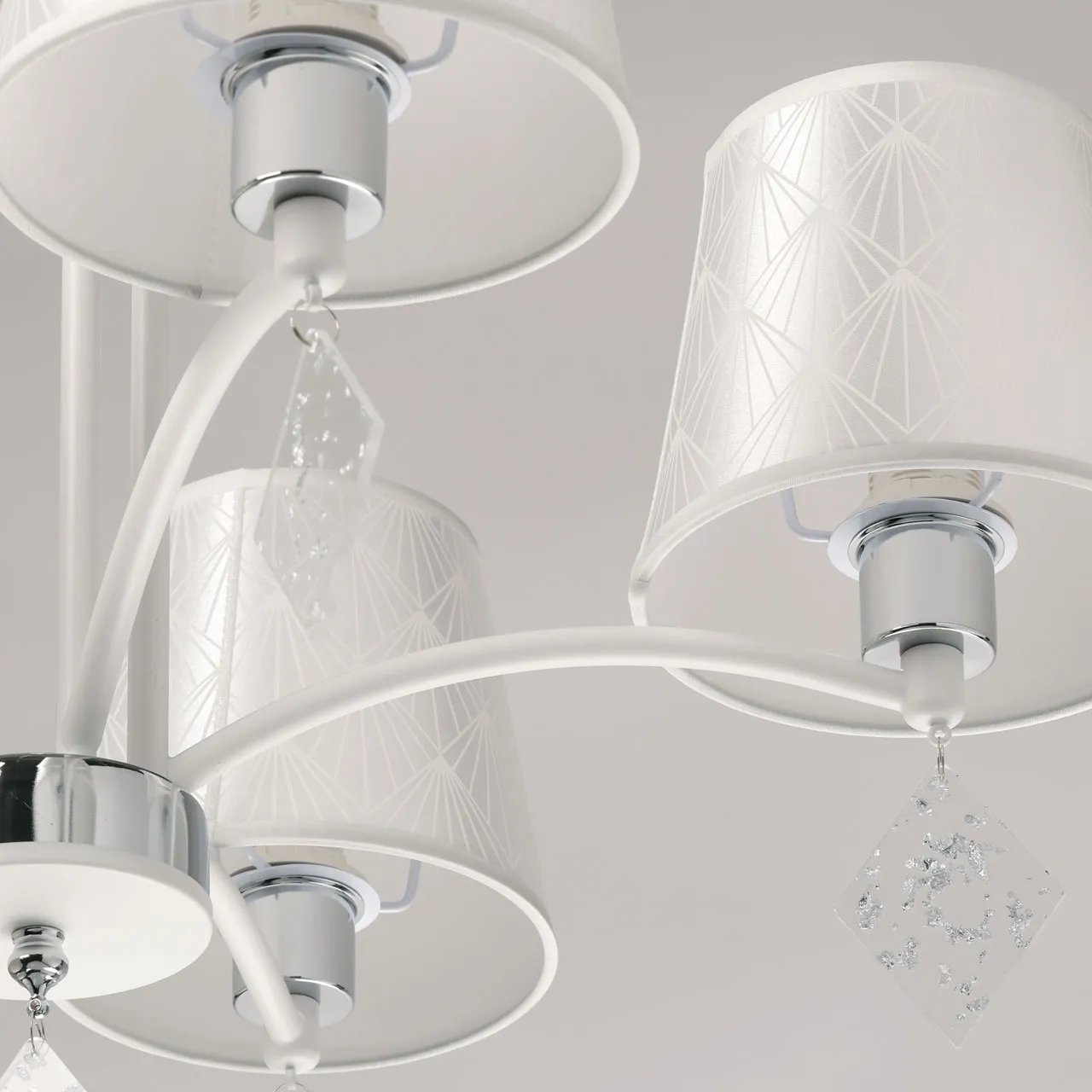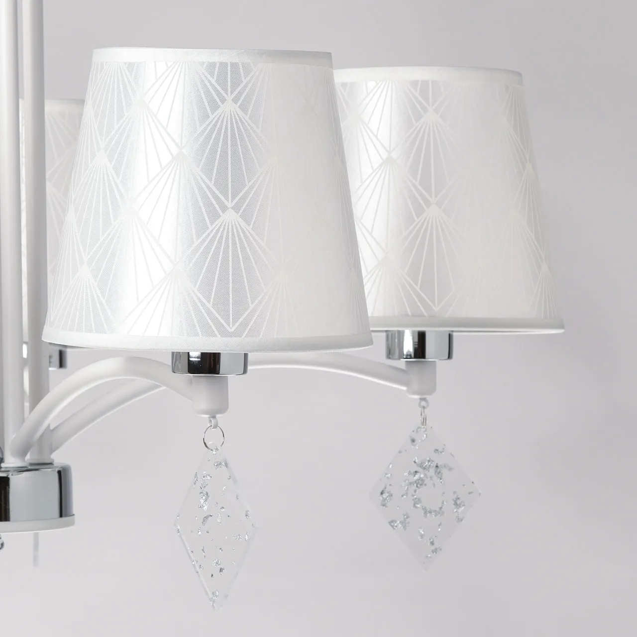 Основание/ металл/ белый, хром Абажуры/ акрил, текстиль/ прозрачный, белый Декор/ акрил/ прозрачны