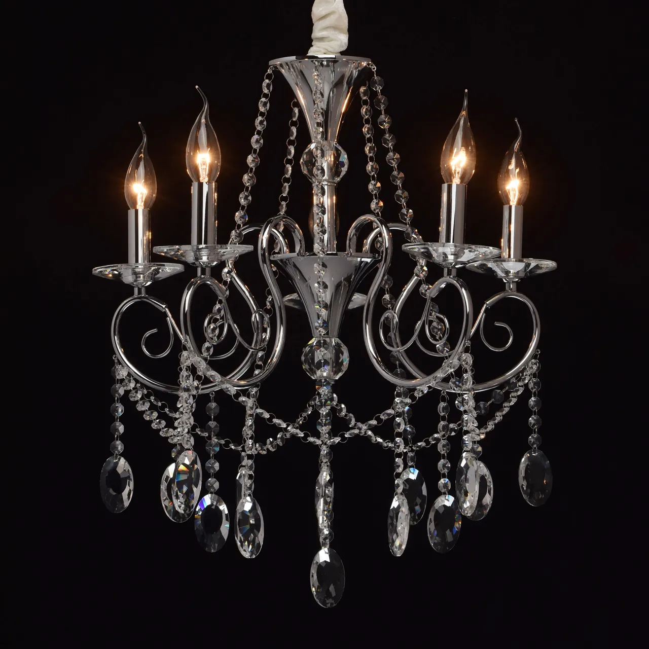 Металлическое основание цвета хрома. Декор - хрусталь, высокого качества.