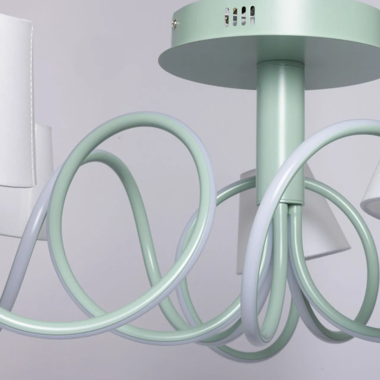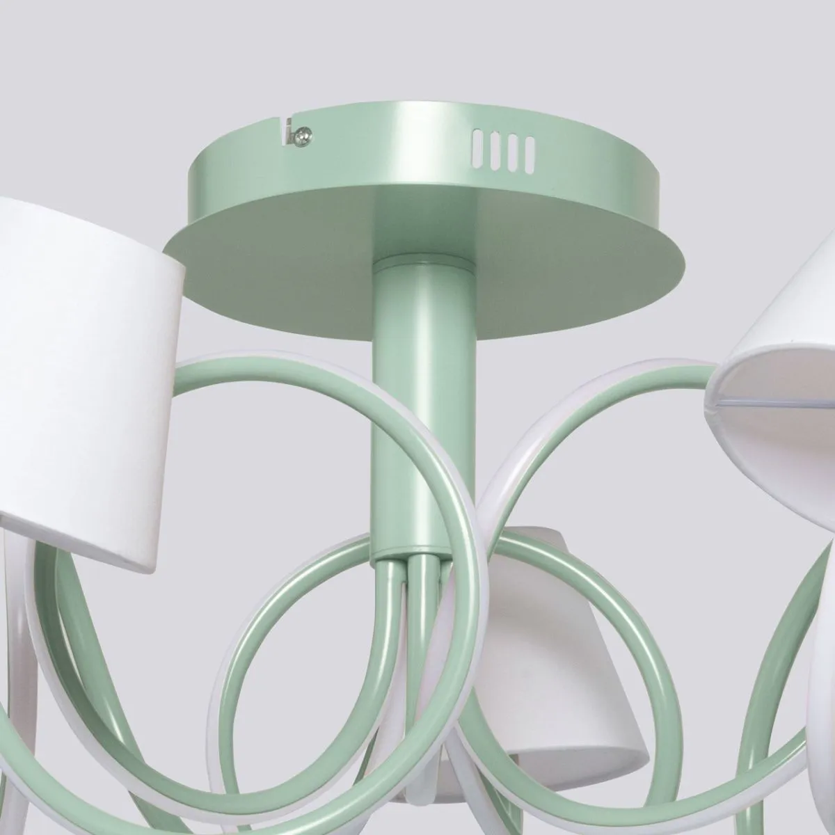 Основание/ металл/ зеленый Плафон/ сплав алюминия, силикон/ зеленый, белый Абажур/ текстиль, акрил