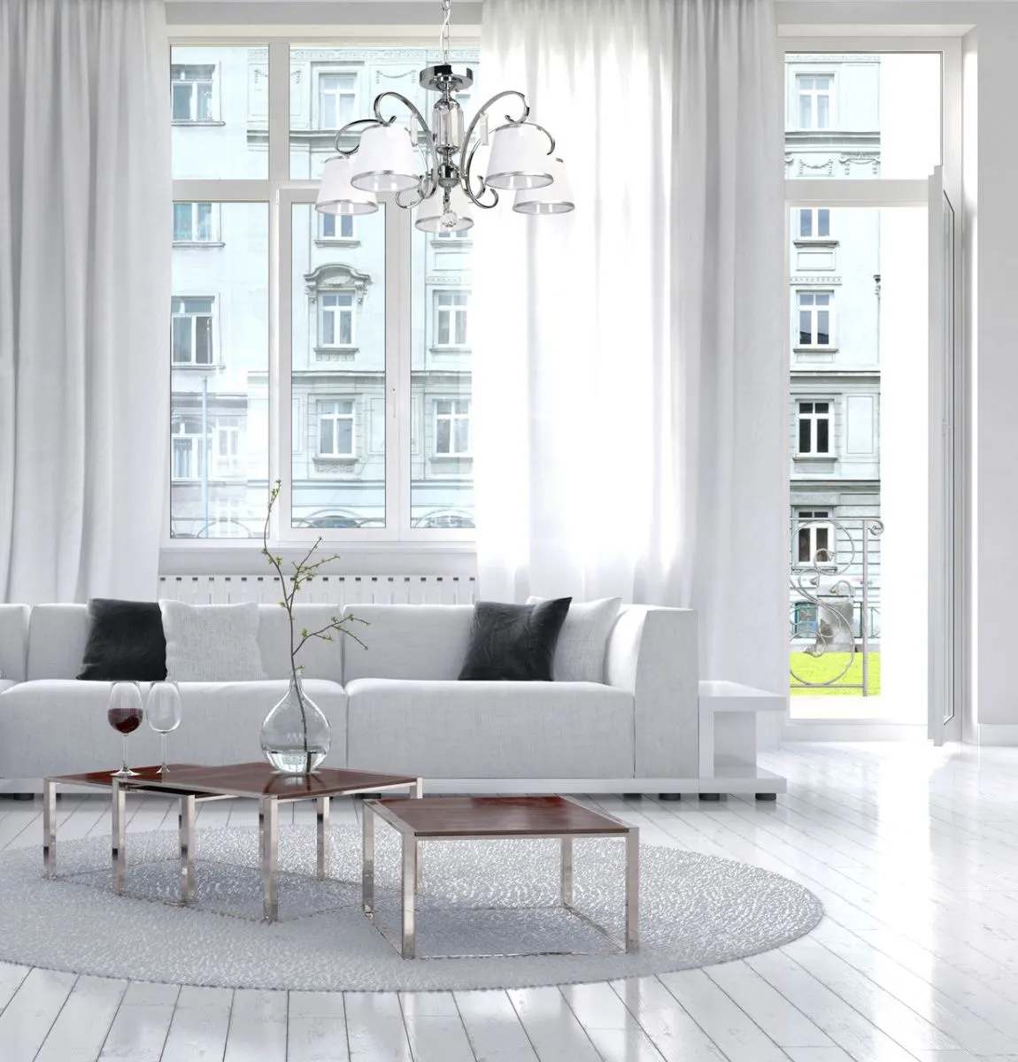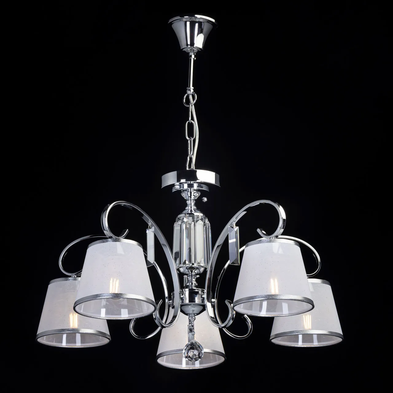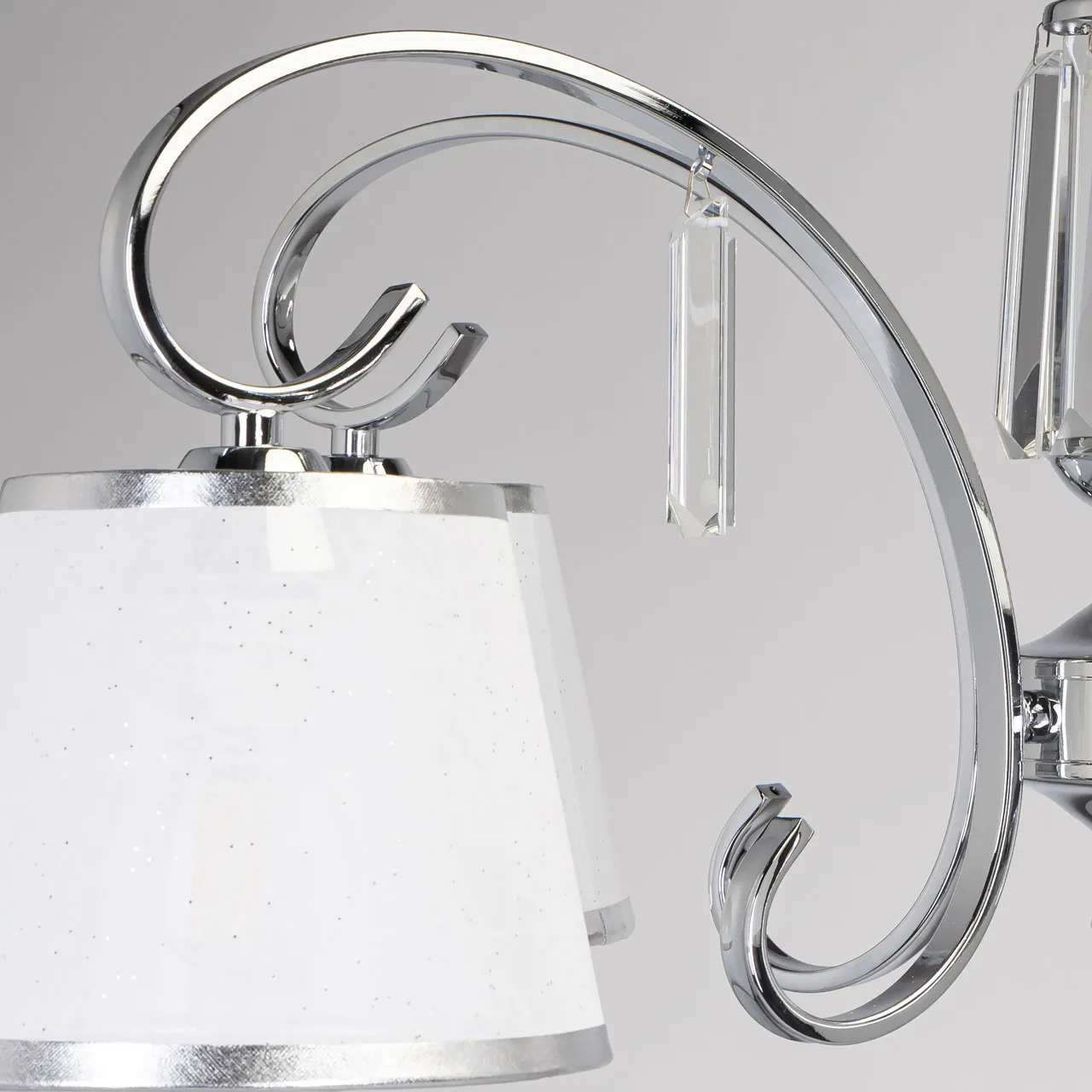 Основание/ металл/ хром Абажур/ текстиль, акрил/ белый, прозрачный Декор/ хрусталь/ прозрачный