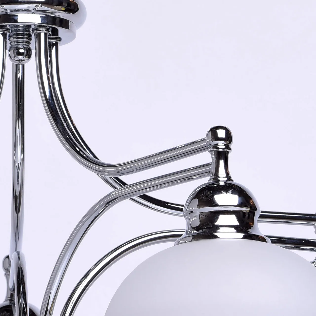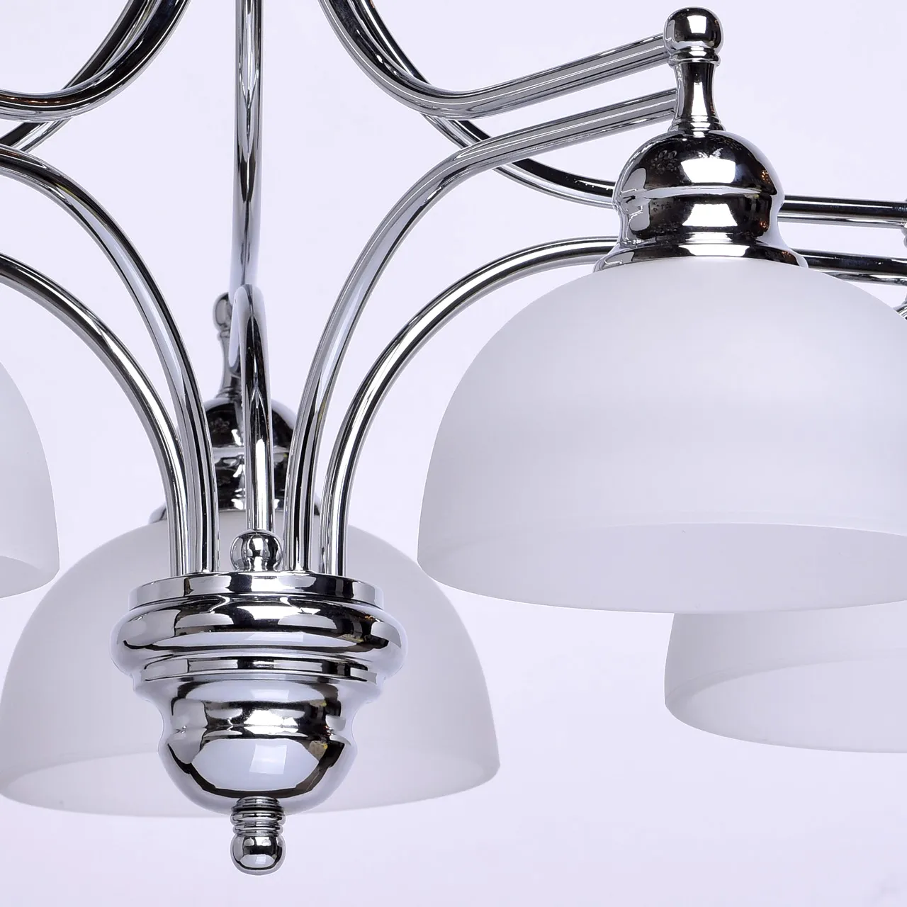 Металлическое основание цвета хрома, стеклянные плафоны