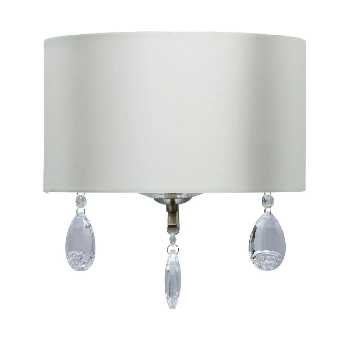 Основание/металл/ античная бронза. Абажур/ атлас/сливочного цвета. Декор/ прозрачный хрусталь.