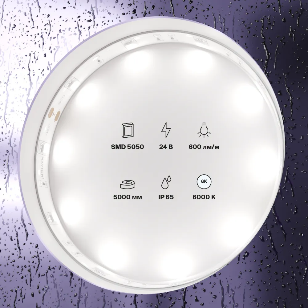 Светодиодная лента 24В 5050 7,2Вт/м 6000K 5м IP65